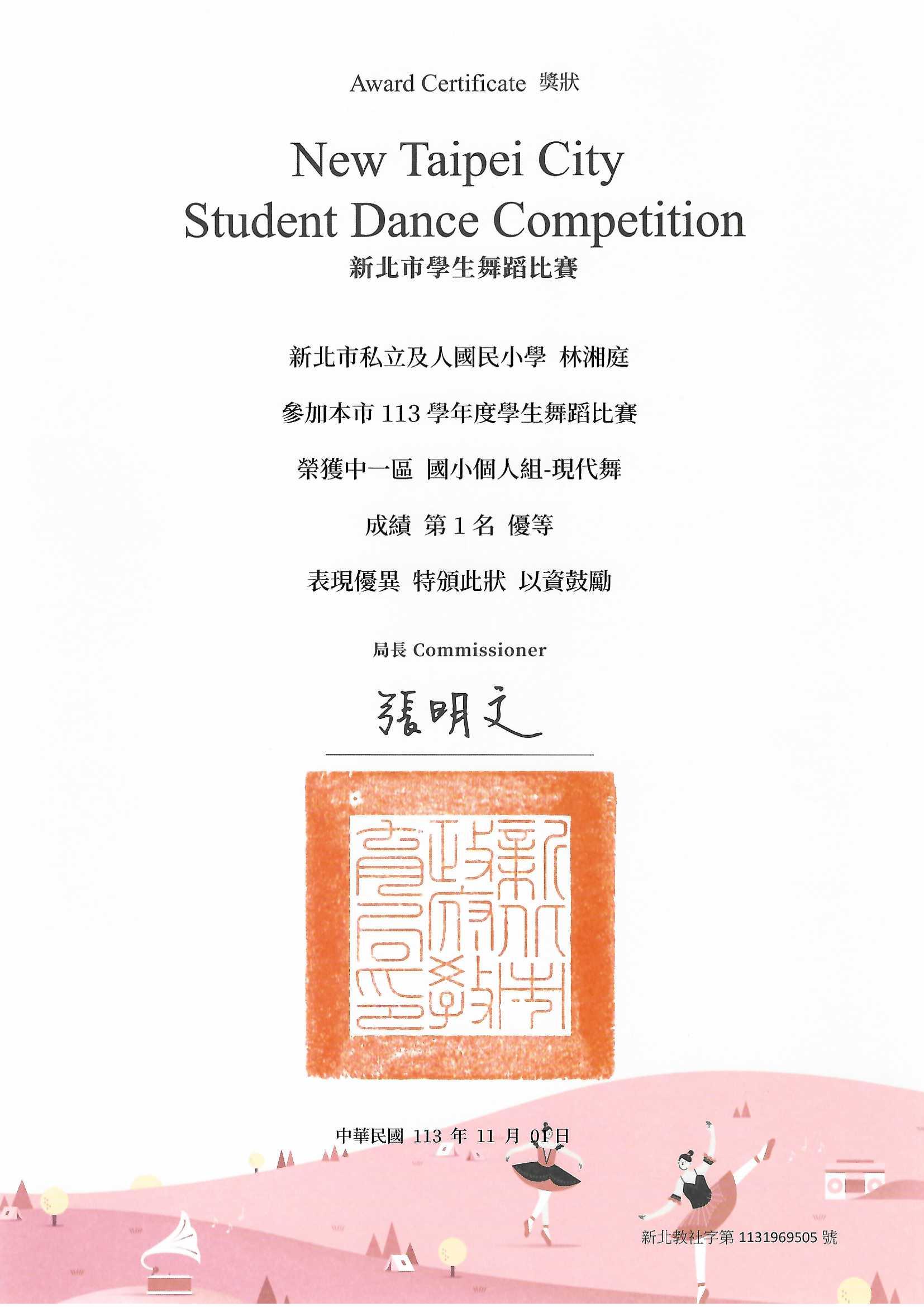 2024 11/1 六仁林湘庭榮獲新北市113學年度學生舞蹈比賽中一區國小個人組現代舞第一名! 賀!六仁林湘庭榮獲新北市113學年度學生舞蹈比賽中一區國小個人組現代舞第一名!表現優異!恭喜獲獎同學!感謝老師熱心指導!241101-六仁林湘庭.jpg 217.46 KB 返回