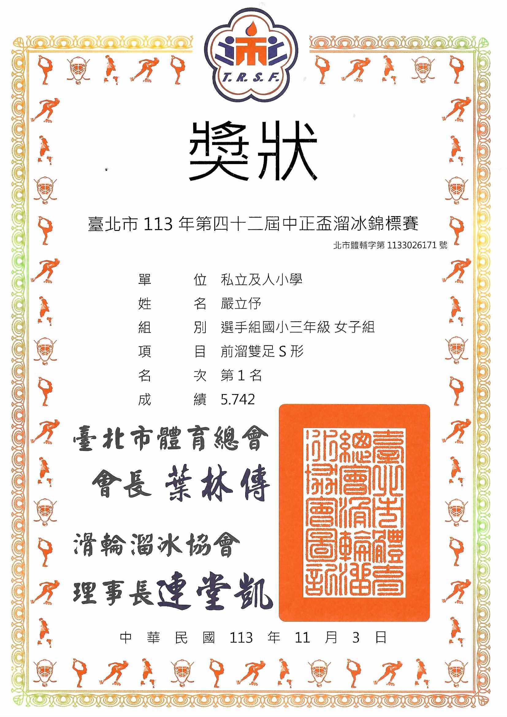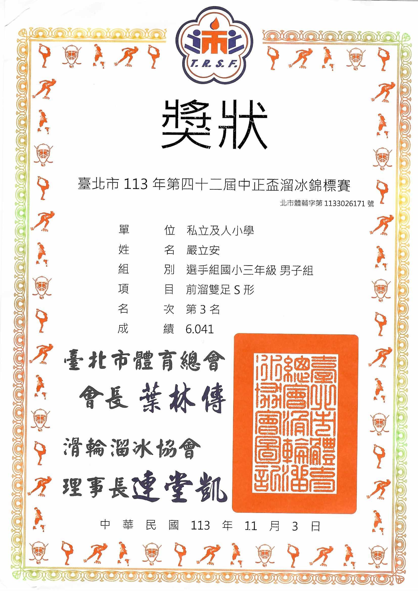 賀!本校參加臺北市113年第42屆中正盃溜冰錦標賽