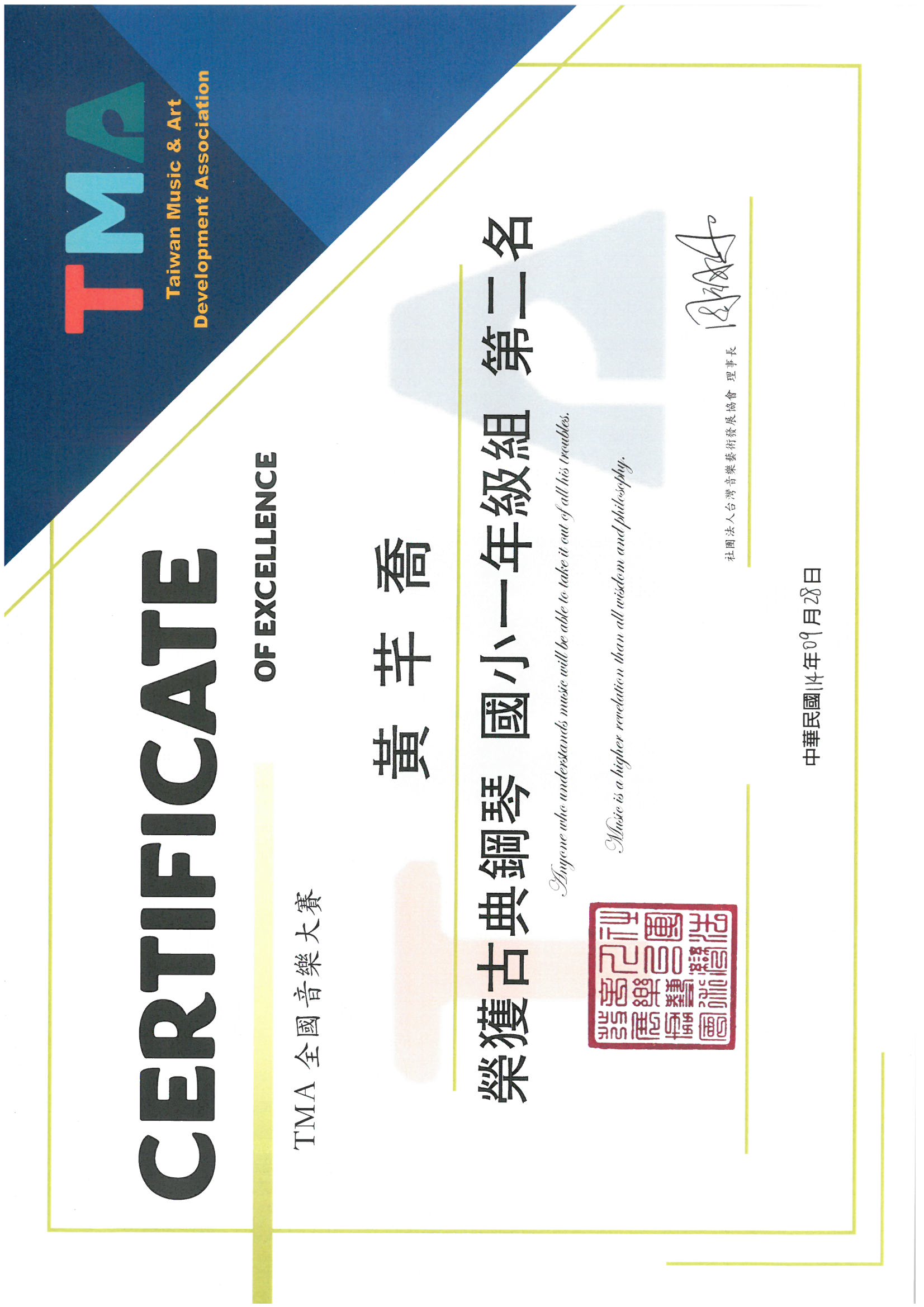 2025 10/1 賀本校 一忠 黃芊喬同學 榮獲TMA全國音樂大賽 古典鋼琴 國小一年級組 第二名 一年忠班 黃芊喬榮獲TMA全國音樂大賽 古典鋼琴 國小一年級組 第二名.jpg 285.62 KB賀本校 一忠 黃芊喬同學 榮獲TMA全國音樂大賽 古典鋼琴 國小一年級組 第二名 返回