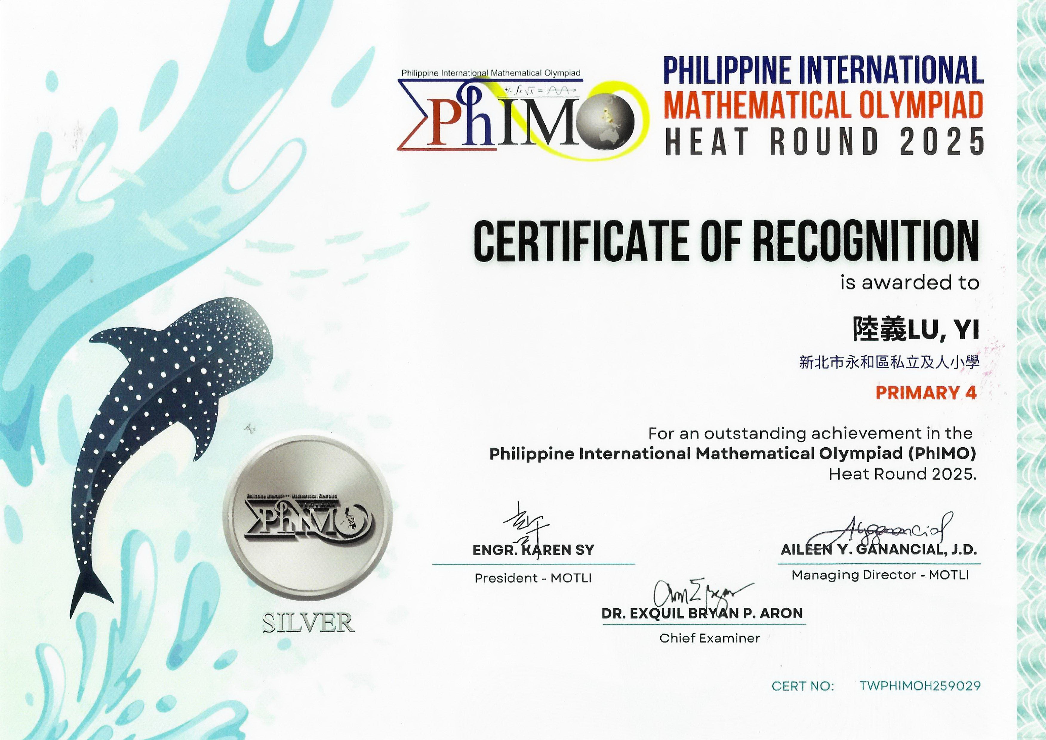 2025 10/20 賀 本校五愛陸義參加2025菲律賓國際數學奧林匹克競賽(PHIMO)選拔賽 銀牌 賀 本校五愛陸義 參加2025菲律賓國際數學奧林匹克競賽(PHIMO)選拔賽 銀牌陸義銀牌.jpg 1.06 MB 返回