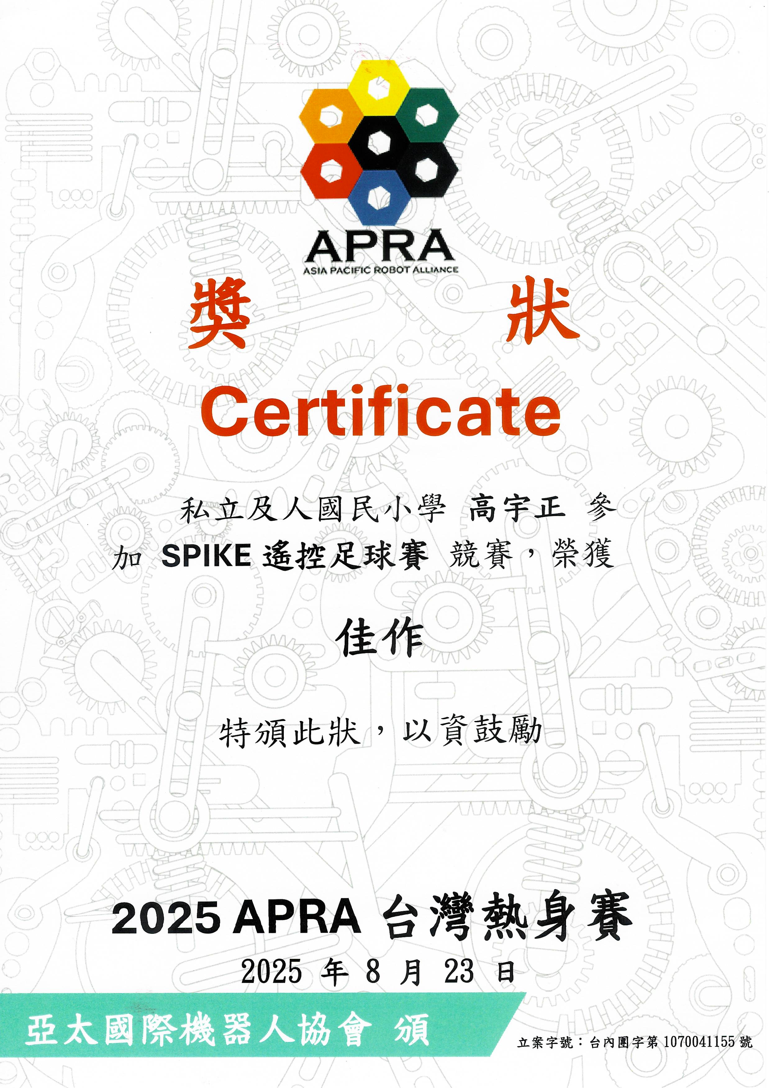 賀!本校五仁高宇正參加SPIKE遙控足球賽 榮獲佳作,恭喜獲獎同學!