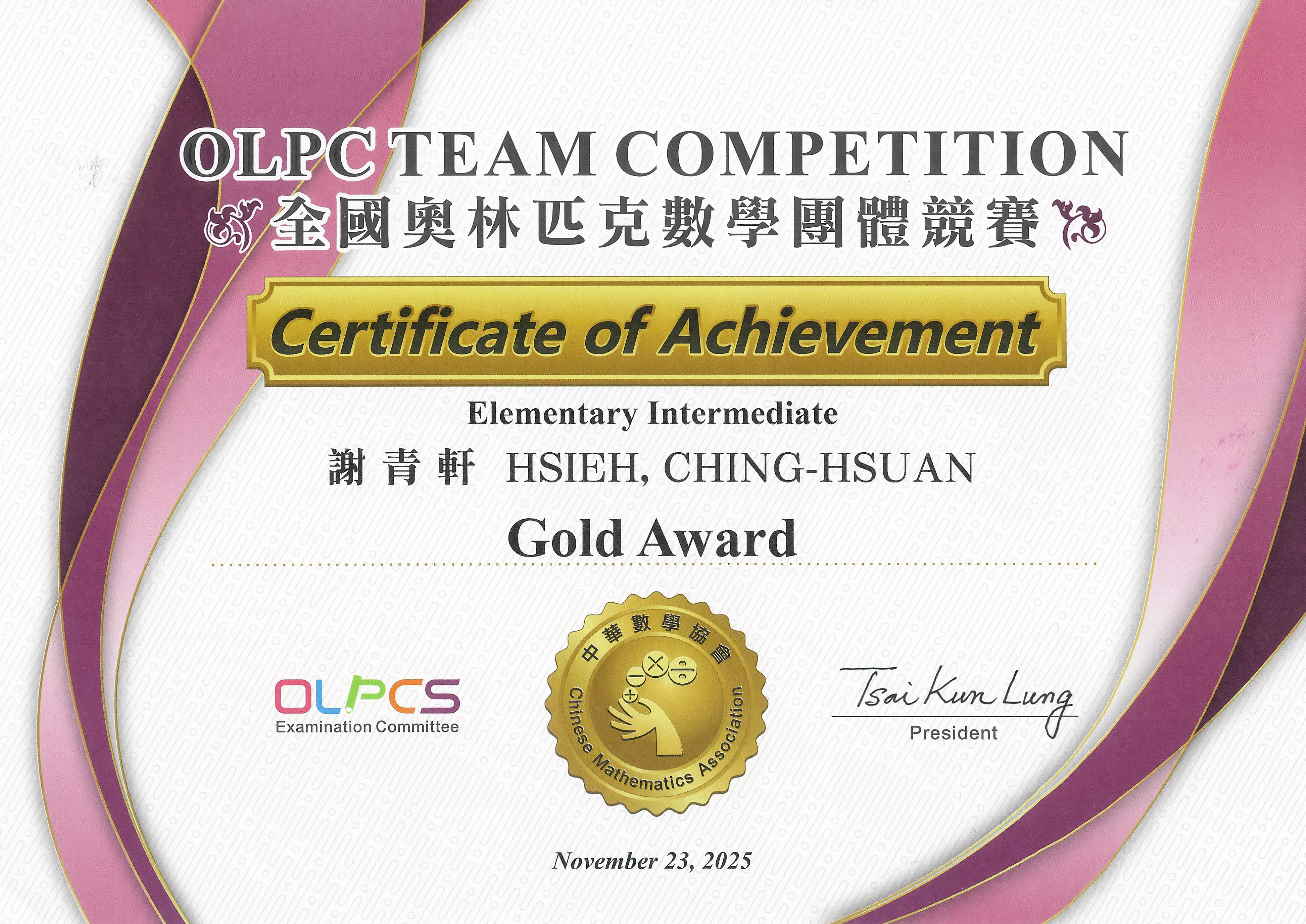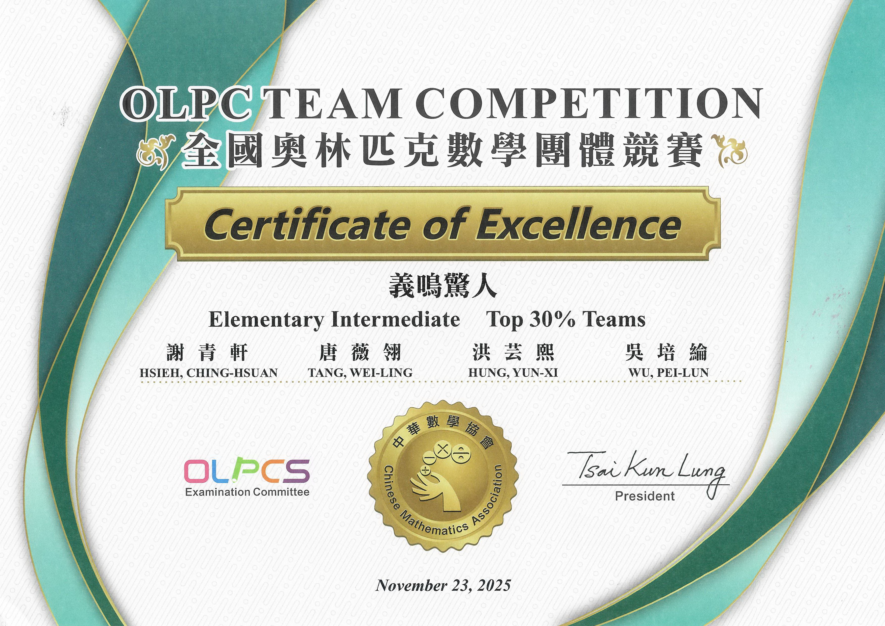 2026 1/12 賀 本校參加62屆奧林匹克團體競賽 成績優異 恭喜獲獎同學! 賀 本校參加62屆奧林匹克團體競賽 成績優異 恭喜謝青軒 唐薇翎 洪芸熙 吳培綸等獲獎同學!感謝指導老師林晏竹!62屆奧林匹克團體競賽獎_頁面_1.jpg 1.61 MB62屆奧林匹克團體競賽獎_頁面_2.jpg 1.53 MB謝青軒.jpg 1.63 MB唐薇翎.jpg 1.63 MB洪芸熙.jpg 1.61 MB吳培綸.jpg 1.62 MB 返回