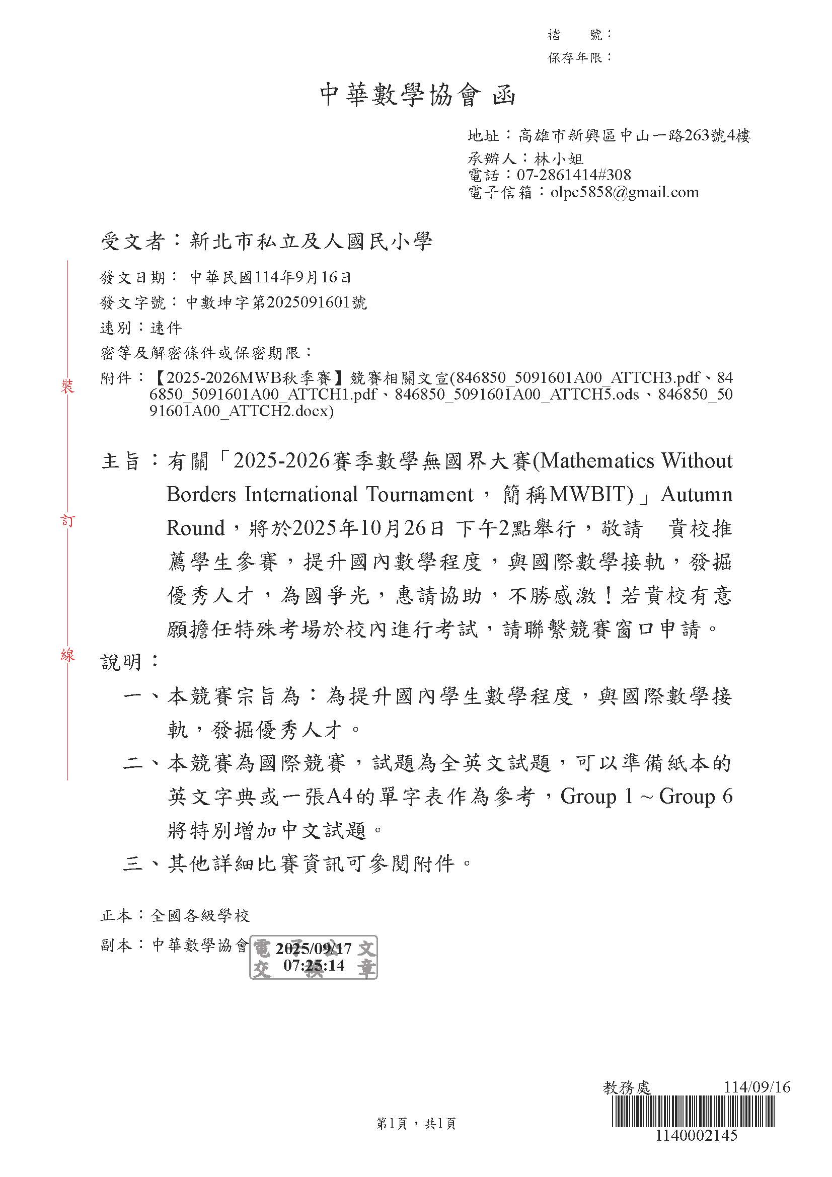 2025 9/17 賽季數學無國界大賽 846850_5091601A00_ATTCH3.jpg 728.59 KB賽季數學無國界大賽.jpg 277.44 KB846850_5091601A00_ATTCH1_頁面_1.jpg 234.87 KB846850_5091601A00_ATTCH1_頁面_2.jpg 252 KB846850_5091601A00_ATTCH1_頁面_3.jpg 266.02 KB846850_5091601A00_ATTCH1_頁面_4.jpg 245.76 KB846850_5091601A00_ATTCH1_頁面_5.jpg 331.01 KB846850_5091601A00_ATTCH1_頁面_6.jpg 217.1 KB 返回