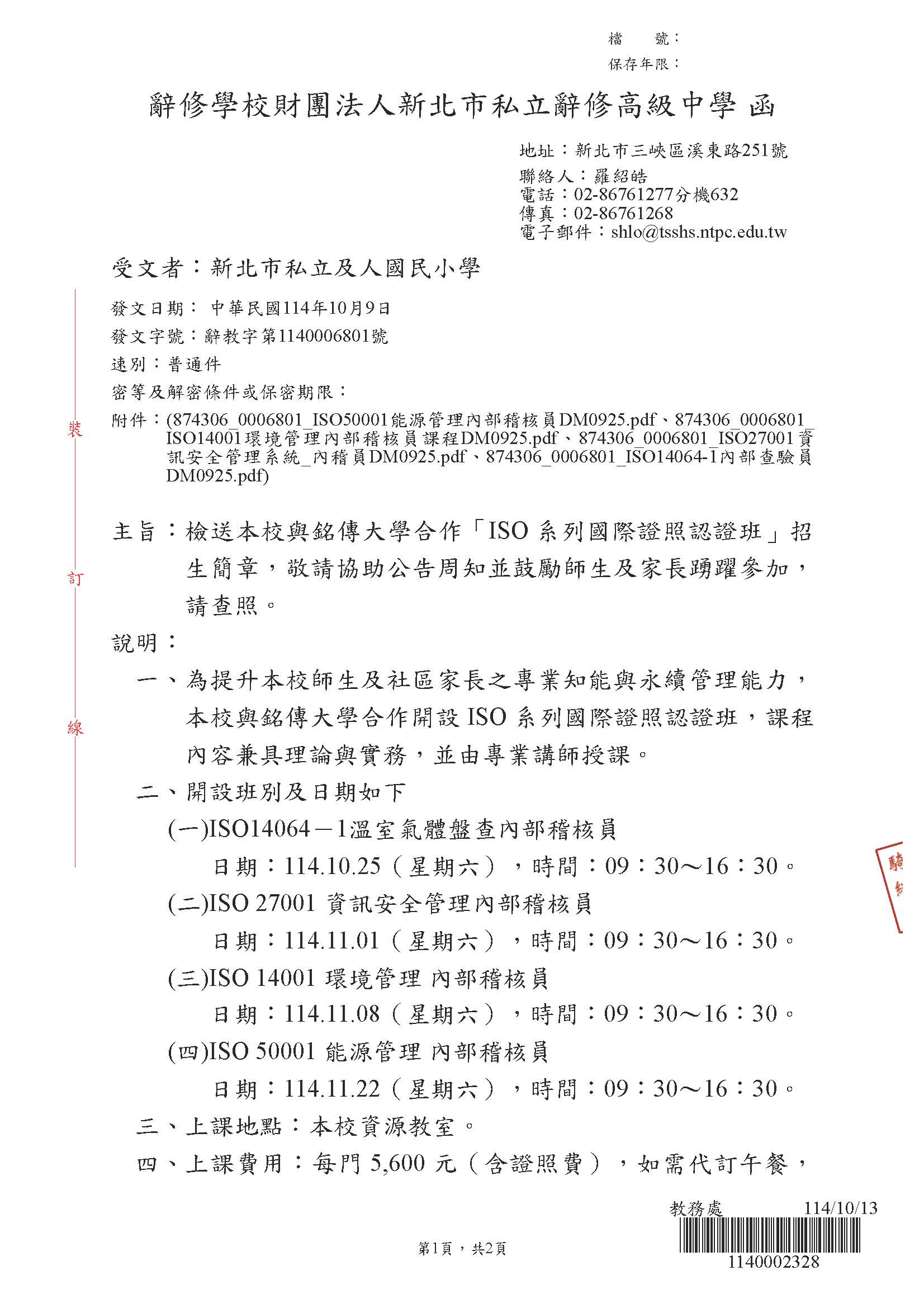 2025 10/15 銘傳大學合作ISO系列國際證照認證班 SPEED Super Desk_頁面_1.jpg 316.32 KBSPEED Super Desk_頁面_2.jpg 50.25 KB874306_0006801_ISO50001能源管理內部稽核員DM0925.jpg 347.11 KB874306_0006801_ISO14001環境管理內部稽核員課程DM0925.jpg 292.34 KB874306_0006801_ISO14064-1內部查驗員DM0925.jpg 312.25 KB874306_0006801_ISO27001資訊安全管理系統_內稽員DM0925.jpg 303.08 KB 返回