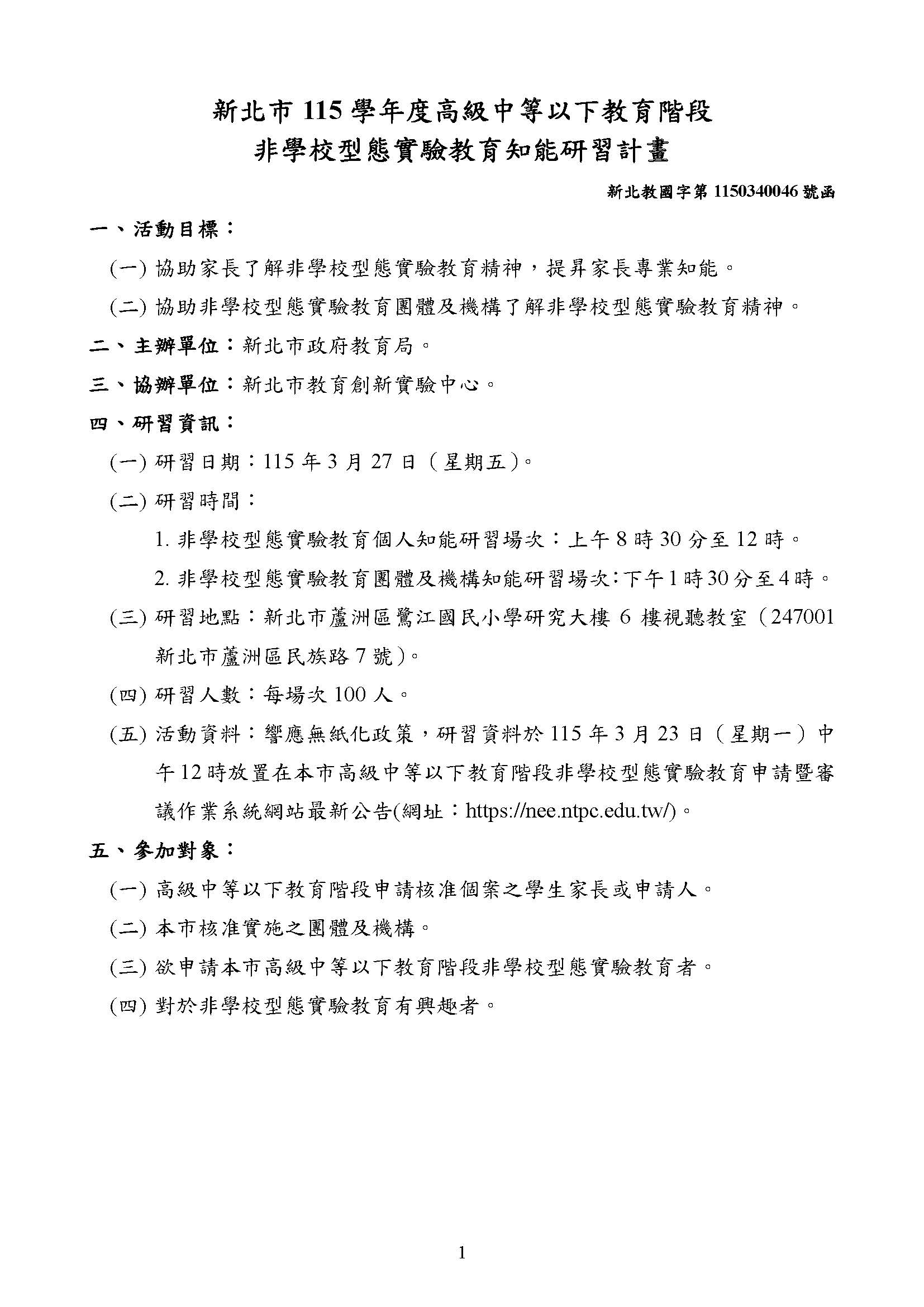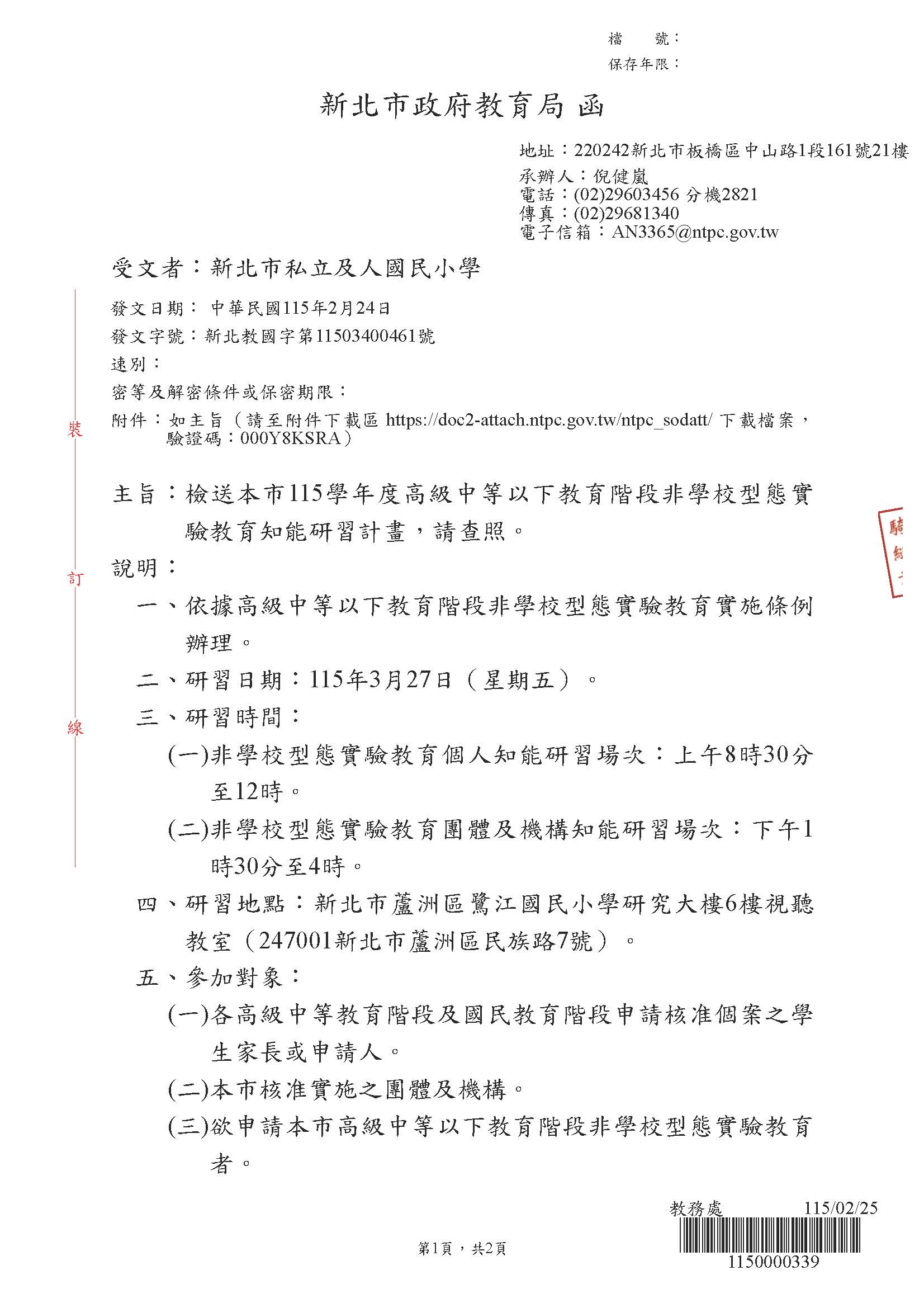 2026 2/25 本市115學年度高級中等以下教育階段非學校型態實驗教育知能研習計畫 SPEED Super Desk_頁面_1.jpg 273.85 KBSPEED Super Desk_頁面_2.jpg 110.34 KB(發文)新北市114學年度非學校型態實驗教育知能研習計畫_頁面_1.jpg 253.48 KB(發文)新北市114學年度非學校型態實驗教育知能研習計畫_頁面_2.jpg 263.47 KB(發文)新北市114學年度非學校型態實驗教育知能研習計畫_頁面_3.jpg 313.44 KB(發文)新北市114學年度非學校型態實驗教育知能研習計畫_頁面_4.jpg 141.78 KB(發文)新北市114學年度非學校型態實驗教育知能研習計畫_頁面_5.jpg 120.05 KB 返回