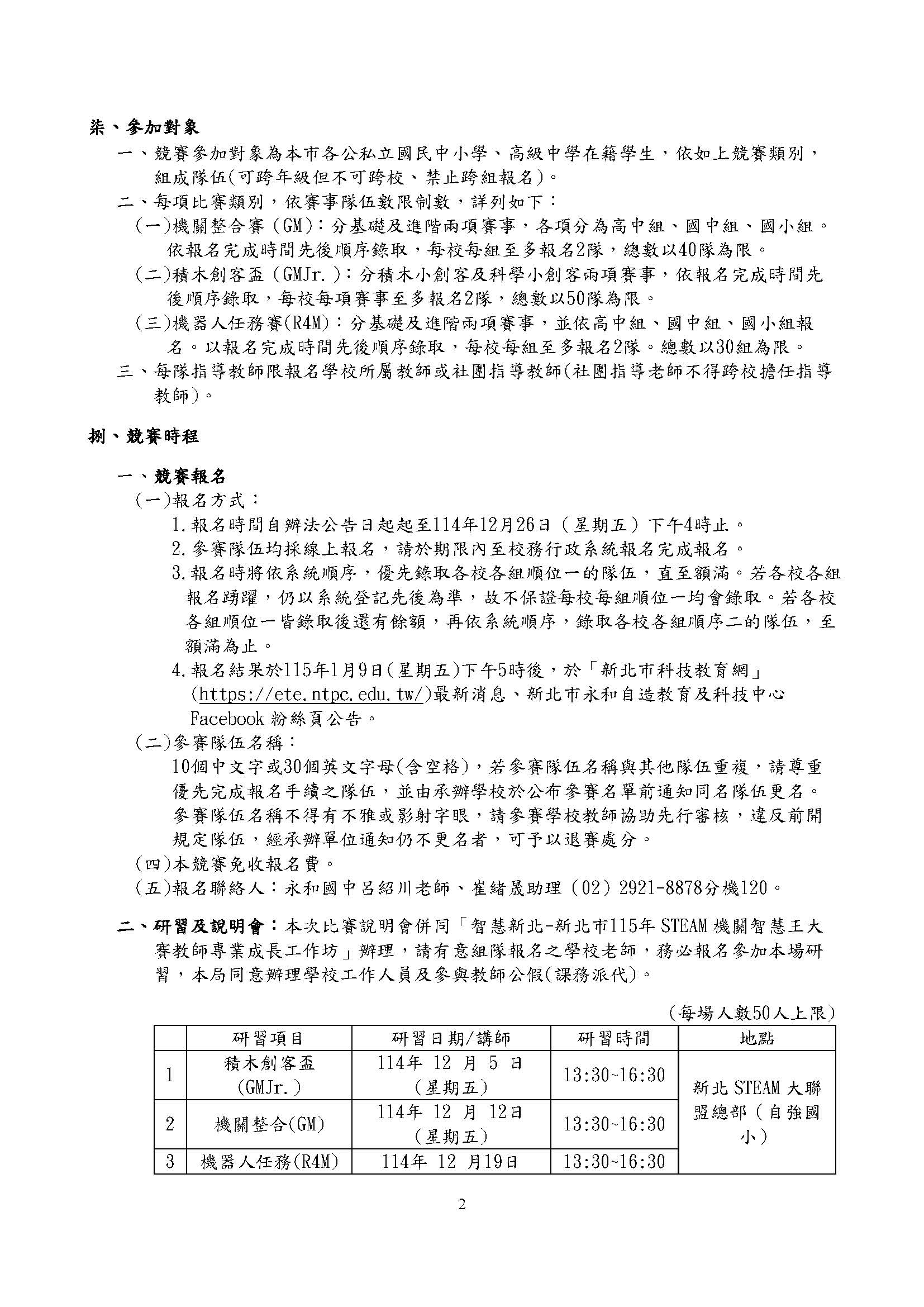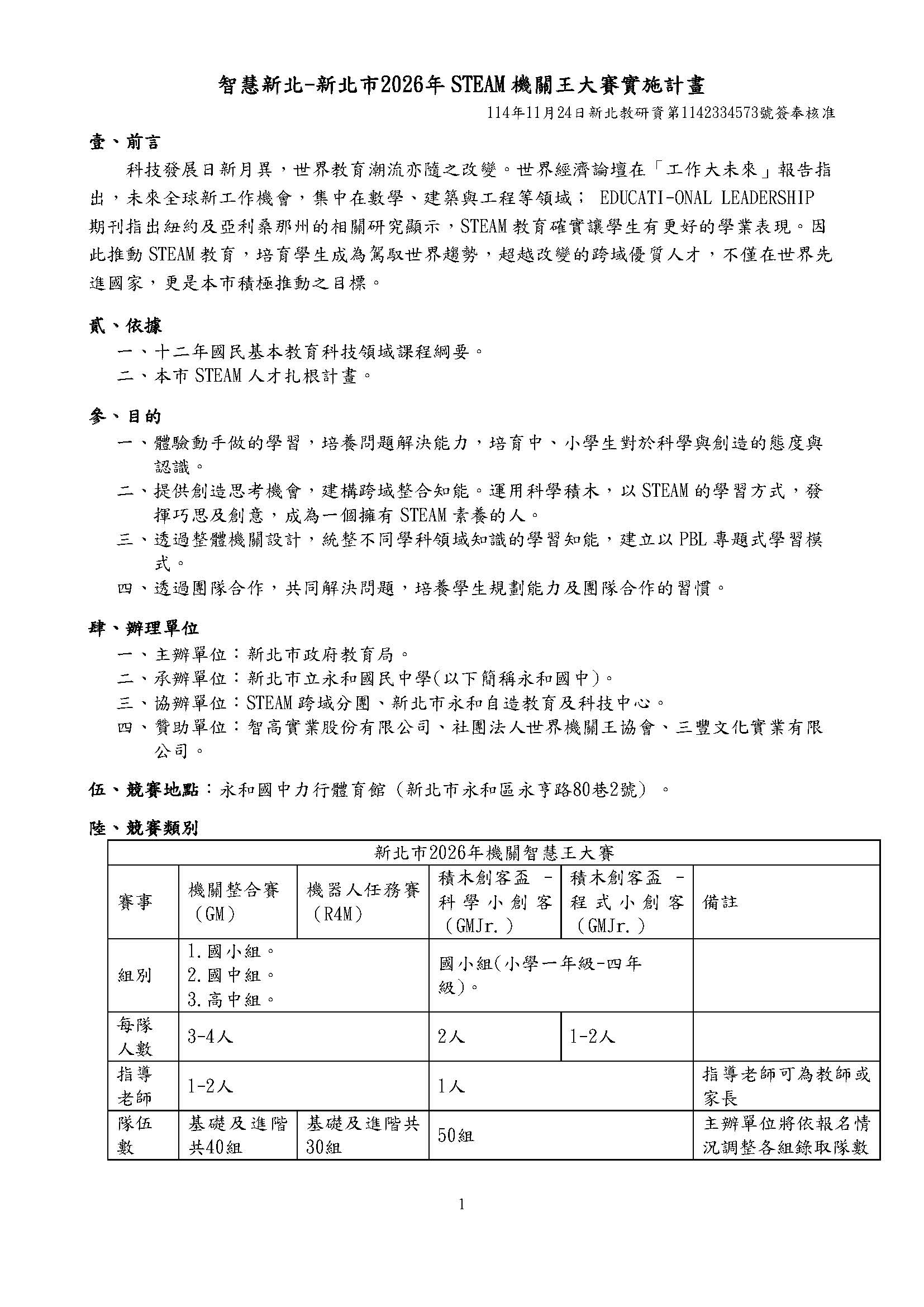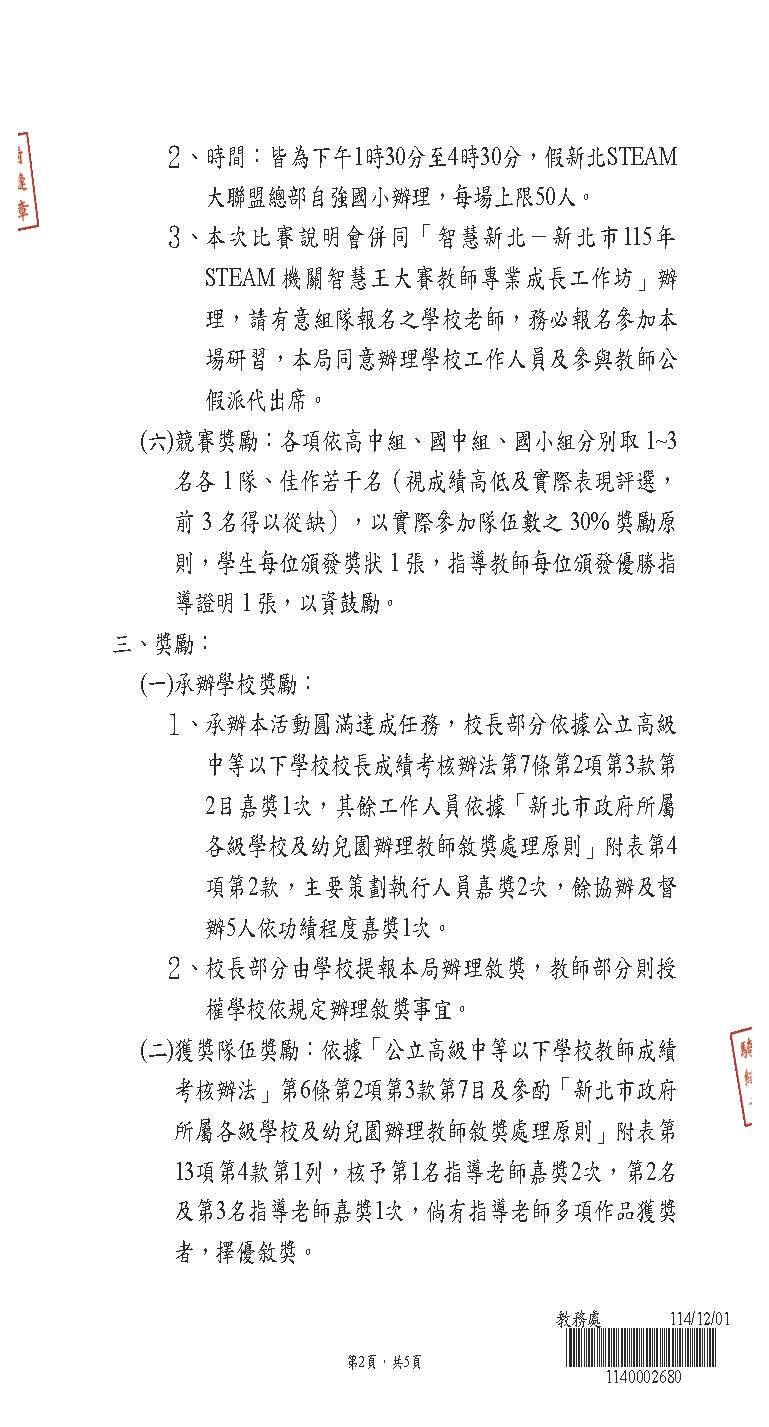 2025 12/2 新北市2026STEAM機關王大賽 SPEED Super Desk_頁面_1.jpg 299.84 KBSPEED Super Desk_頁面_2.jpg 136.92 KB931852_2408168_智慧新北-新北市2026STEAM機關王大賽實施計畫(公告)_頁面_1.jpg 325.33 KB931852_2408168_智慧新北-新北市2026STEAM機關王大賽實施計畫(公告)_頁面_2.jpg 398.48 KB931852_2408168_智慧新北-新北市2026STEAM機關王大賽實施計畫(公告)_頁面_3.jpg 357.68 KB931852_2408168_智慧新北-新北市2026STEAM機關王大賽實施計畫(公告)_頁面_4.jpg 280.04 KB931852_2408168_智慧新北-新北市2026STEAM機關王大賽實施計畫(公告)_頁面_5.jpg 242.75 KB 返回