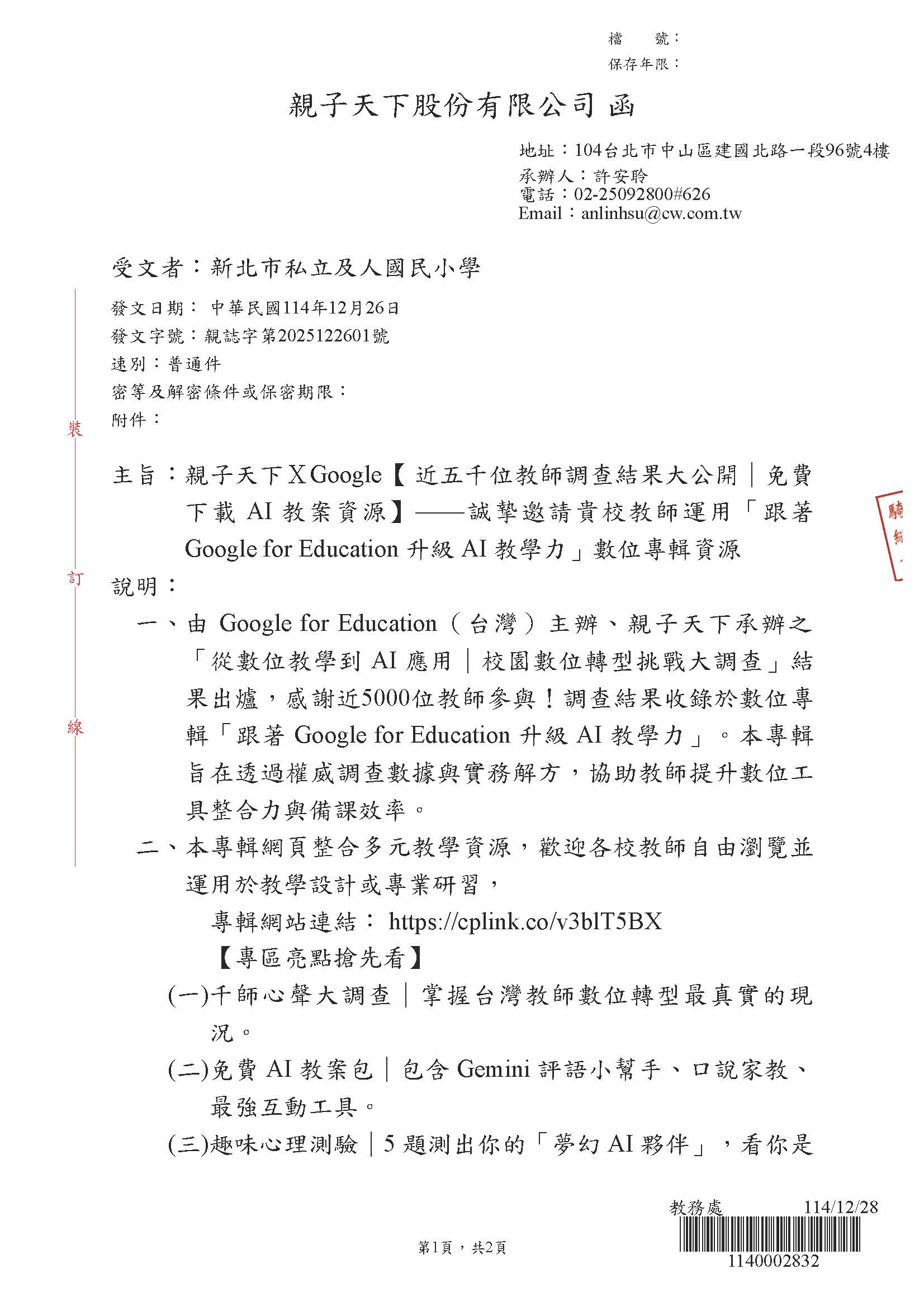 2025 12/29 親子天下XGoogle【 近五千位教師調查結果大公開|免費下載 AI 教案資源】 SPEED Super Desk_頁面_1.jpg 289.35 KBSPEED Super Desk_頁面_2.jpg 70.03 KB 返回