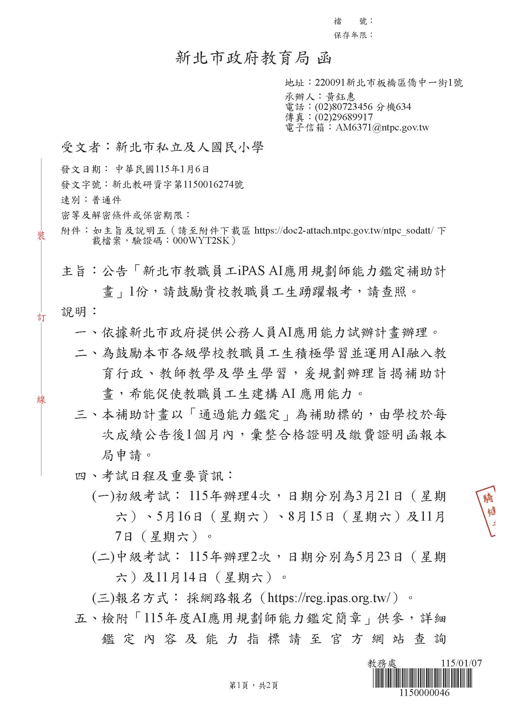 2026 1/7 新北市教職員工iPAS AI應用規劃師能力鑑定補助計畫 SPEED Super Desk_頁面_1.jpg 310.88 KB附件2_頁面_01.jpg 82.8 KB附件2_頁面_02.jpg 155.24 KB附件2_頁面_03.jpg 137.86 KB附件2_頁面_04.jpg 108.51 KB附件2_頁面_05.jpg 126.99 KB附件2_頁面_06.jpg 137.13 KB附件2_頁面_07.jpg 146.19 KB附件2_頁面_08.jpg 164.33 KB附件2_頁面_09.jpg 144.96 KB附件2_頁面_10.jpg 169.92 KB附件2_頁面_11.jpg 171.74 KB附件2_頁面_12.jpg 175.66 KB附件2_頁面_13.jpg 147.15 KB附件2_頁面_14.jpg 177.8 KB附件2_頁面_15.jpg 183.38 KB附件2_頁面_16.jpg 167.64 KB附件2_頁面_17.jpg 166.56 KB附件2_頁面_18.jpg 194.81 KB附件2_頁面_19.jpg 201.96 KB附件2_頁面_20.jpg 89.82 KB附件2_頁面_21.jpg 149.6 KB附件2_頁面_22.jpg 200.53 KB附件2_頁面_23.jpg 154.93 KB附件2_頁面_24.jpg 170.42 KB附件2_頁面_25.jpg 131.24 KB附件2_頁面_26.jpg 153.56 KB附件2_頁面_27.jpg 56.85 KB新北市教職員工生申請iPASAI應用規劃師能力鑑定補助計畫(公告版)_頁面_1.jpg 258.75 KB新北市教職員工生申請iPASAI應用規劃師能力鑑定補助計畫(公告版)_頁面_2.jpg 215.26 KB 返回